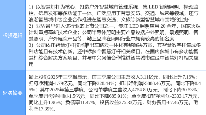 11月5日勤上股份涨停:才智灯杆LED才智城市概念热股